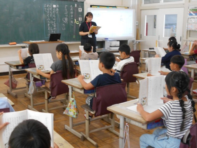 2年1組の2時間目は国語です。現在『どうぶつ園のじゅうい』の学習をしています。初めに「算」「活」2つの新しい漢字の学習をしました。みんな書き順に気をつけながら一生懸命練習をしていました。次に今日は『どうぶつ園のじゅうい』の2段落目の学習でした。教科書の叙述にそって、「いつ」「なにをするか」「理由」「くふう」について見つけていきます。必要な部分に赤や青で丸をつけたり、線を引いたり、□で囲んだりしながら読み取っていきます。何度も音読しながら、真剣に見つける様子が見られました。この文の読み取り方が、これからの学習にとても役立っていきます。教科書をよく読んで読み取り方について覚えていきましょうね。