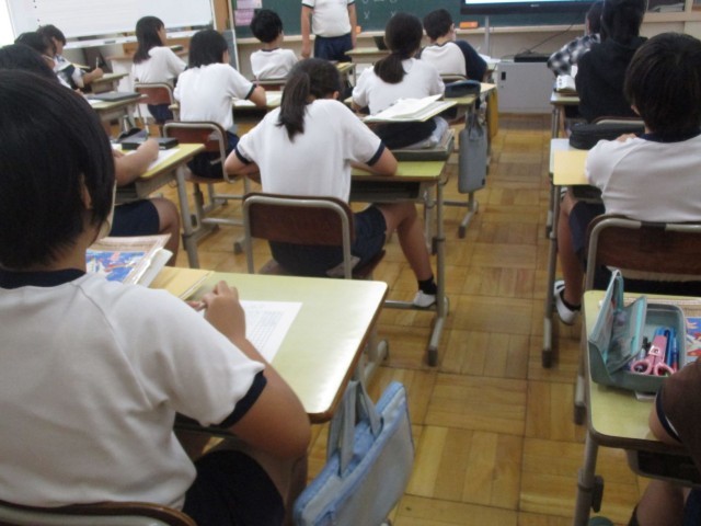 6年2組の4時間目は外国語です。今日は「世界のお菓子を紹介しよう」で、自分が調べたお菓子について ①お菓子の名前 ②どこの国のお菓子か ③その国はどこにあるのか などの内容を英語を使って発表しました。また、その発表を見ながら聞いている方は一人ずつメモをとって内容についてまとめ、最後に「今日の発表のMVP」を決めました。みんな「聞いている人にしっかり伝える」ことを意識して、ときにはジェスチャーを加えながら堂々と発表することができました。英語を使って表現できることがどんどん増えていきますね。