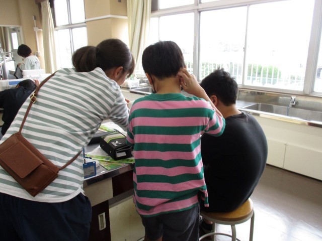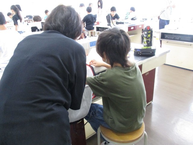 5年1組の1・2時間目の授業は家庭科です。今日の学習は「ミシンで楽しくソーイング」です。現在エプロンを作っています。今日は4人の保護者の方が手伝ってくださいました。ミシンの使い方に困っているとすぐに駆けつけて教えてくださったり、ミシンの調子が悪いと直してくださったり、作業が止まることなくアドバイスもしてくださいました。おかげでほとんど仕上がってあとポケットをつければ完成!!という人が多くなってきました。出来上がりがとても楽しみです。本当にありがとうございました。