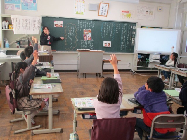 2年1組の5時間目は道徳です。今日の題材は「ジェニーちゃんのおもてなし」国際理解の学習です。ジェニーちゃんは1年生のときにフィリピンから引っ越してきた、主人公のしんやのとなりの席の子です。写真をみせてくれたりいろいろなお話をして、とても仲良くなりました。フィリピンのお菓子をジェニーちゃんに勧められたとき、しんやは少し戸惑いました。食べたことのないものだったからです。その時のシンヤの気持ちを考えました。「食べたことないものを食べるなんて不安だよね」「ぼくは食べられないかも」「食べるのが楽しみ!」など。シンヤの気持ちを考えながら楽しく学習することができました。最後にタブレットを使って他の国のことも調べてみました。