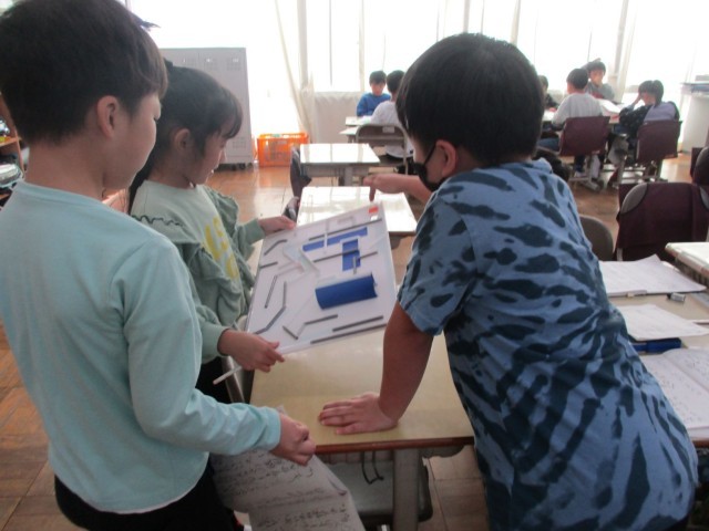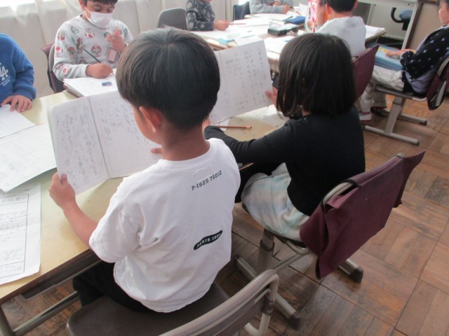 2年2組の3時間目は国語です。現在の学習は『おもちゃの作り方を説明しよう』です。今日は、組み立てメモを使って、作り方を説明する文を書きました。まず、つぎに、それからなどの接続語を使いながら、わかりやすい文にしていきます。この学習の終末にはその説明する文を使って生活科の『おもちゃランド』のためのおもちゃづくりを予定しています。書き上がった文は班の人と交換して読み合って「本当に伝わるか」「分かりづらいところはないか」をアドバイスしてもらいました。「ここの書き方を工夫したほうがいいよ」「おもちゃを使って確認してみよう」など班の人と協力しながら、わかりやすい文を書くためにみんな真剣に取り組んでいました。書いた文をもとにおもちゃを作ることができるかな?今から楽しみです。