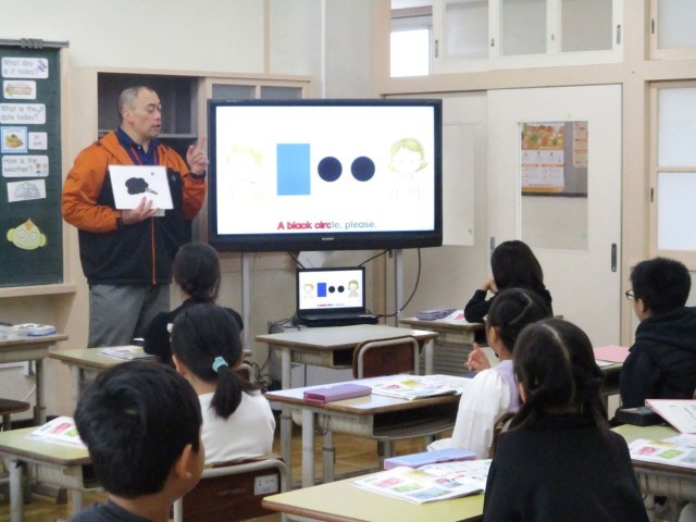 3年2組の2時間目は外国語です。今日の学習は「ほしいものをもらうやりとりをしよう」でした。『What do you want?』と問い、欲しい物の色と形を答えるカードゲームをしました。『What do you want?』と聞かれたら、自分のカードを見てペアができる色と形を言います。赤い丸がかかれているカードがほしければ『red circle, please』と答えます。もし相手が持っていなければ交渉は成立しません。ペアがたくさんできて自分のカードがなくなれば勝ちです。みんな勝つために必死に色と形の言い方を考えて会話をしていました。楽しく英語を学習する様子を見ることができました。