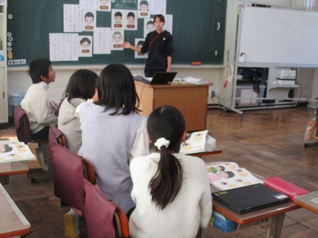 4年2組の3時間目は道徳です。今日の題材は『友達が泣いている』でした。Aさんが泣いていて、Bさんが困った顔をしています。その周りで友達が話している場面です。今日の課題は「どうすればいいか考えよう」です。周りで話している友達をひとり選んでにアドバイスできることを考えます。はじめは班の友達と一緒に考えました。みんなその場面にいるかのように真剣に考えていました。「わたしはそばで見ていて笑っただけよ」という友達には「笑ったら自分がやったのと同じになる。だから、笑ったりするのはやめよう」とか、「こわかったから何もできなかった」という友達には「勇気を出して言ったほうがいいよ」など。みんな自分ごととしてしっかり考え、自分の意見を持つことができていました。