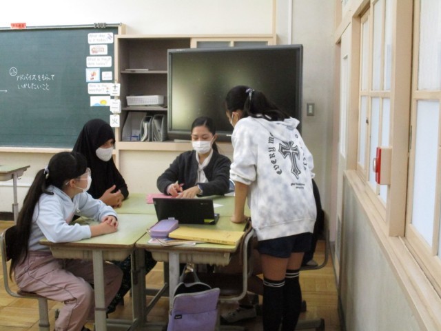 今日はイングリッシュシャワーデイでした。市内のALT7名の先生方が来校し、外国語の授業を行いました。1・2時間目は6年生の学習でした。今日のテーマは『行きたい国の魅力をALTの先生に伝えよう』です。自分で選んだ「行きたい国」について調べたことをもとに、タブレットを使ってわかりやすく伝えます。ポイントは ①声の大きさ ②アイコンタクト ③表情 ④リアクション です。発表したあとでALTの方からアドバイスをいただきました。リアクションや表情についてALTの方がアドバイスをすることが多かったですが、徐々に上手になっていく様子が見られました。