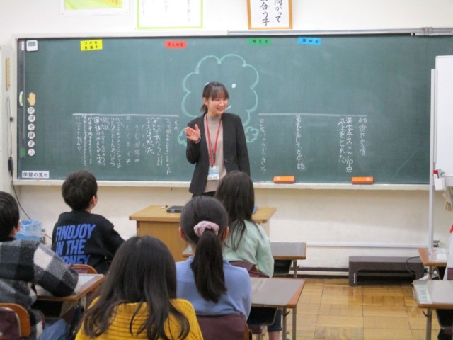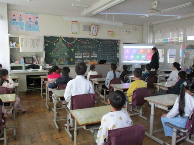 今日は2学期最終日です。2学期は一番長い学期で、いろいろな行事がありました。4年生の教室では、黒板の下半分に2学期にがんばったことや成長したことを書いていました。「給食で完食!!」「漢字テストで90点とったこと」「2分間なわとびがとべるようになった」「はきはきとしたあいさつになった」など2学期を振り返って記入していました。また、「2学期は○○がんばったね」「ここを冬休み復習してね」などと担任の先生が一人ひとり声をかけながら通知表を渡していました。明日から冬休みです。安全に楽しい14日間を過ごし、また1月8日元気に会いましょう。