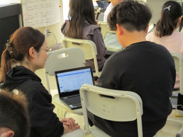 4年2組の5時間目は音楽です。現在「8 日本の音楽でつながろう」の学習をしています。今日の内容は「日本の音階のよさを感じとりながら、せんりつをつくりましょう」です。初めにリズムに合わせて、「ミ・ファ・ラ・シ・ド・ミ」の6つの音を使って旋律を作りました。リズムは「ターン タン タタ ターン タタン」です。6つの音をうまく組み合わせて、作った旋律をリコーダーで吹いてみます。思ったとおりの旋律にならないときは何度もやり直しながら1人1つの旋律を作っていきます。次の時間は3〜4人グループで順番を決めて、今日考えたそれぞれの旋律をつなげて曲を作ります。どんな曲ができるのか楽しみですね。