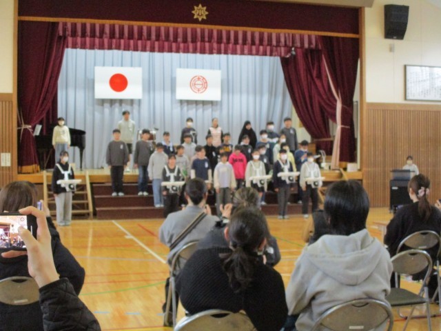 5時間目は4・5・6年となかよし学級の授業参観でした。どの学級も一生懸命学習している様子を保護者の方々に見ていただこうと頑張っている姿が見られました。6年生はクイズ大会と合奏を行いました。クイズ大会では保護者の方と一緒に答えを考え、当てはまる方に移動します。中には全問正解する人もいました。後半は『ケセラセラ』の合奏でした。たくさん練習してきたのに欠席してしまった子もいて残念でしたが、みんなで心を一つにしてがんばりました。小学生でいられるのもあと1ヶ月あまりですね。