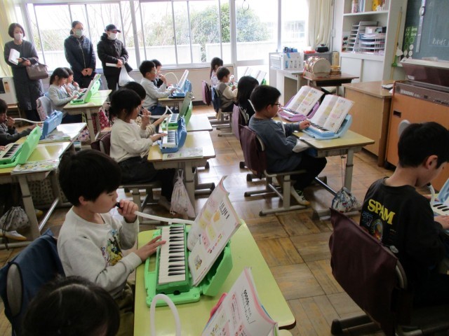 5時間目は1・2・3年生の授業参観でした。1年生は音楽の授業です。『ありがとうの花』を歌ったあとで1年生で学習した曲を鍵盤ハーモニカで演奏しました。今日はお家の方がたくさん見に来てくださったのでとても張り切って演奏していました。たくさんの曲を弾けるようになりました。2年2組は外国語の学習です。今日は「ほしいくだものをつたえたりきいたりしてオリジナルフルーツバスケットをつくろう」の学習でした。フルーツの名前を英語で伝え合いました。フルーツの名前をいくつも英語で伝えられるようになりましたね。