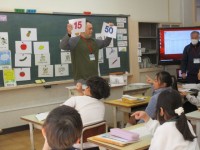 3年1組の3時間目は体育です。現在『タグラグビー』の学習を行っています。タグラグビーはゴール型ゲームで、腰につけたタグを奪い合って守備をします。ラグビーとは違い、タックルや体当たり、スライディング。つかむ行為はすべて禁止です。そして、ボールを持って走ったり、味方にパス(横と後ろのみ)しながらゴールを目指すゲームです。そのため、チームでしっかり作戦を立てて、力を合わせて戦う必要があります。「こっちにパスして」「相手の動きを止めて」など声をかけながら、チーム一丸となってゲームを楽しむ様子を見ることができました。回を重ねるごとに上手に戦うことができるようになってきましたね。