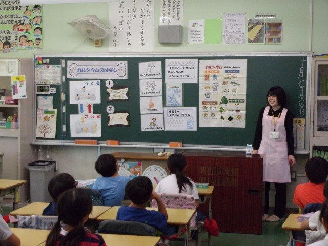 指導者は八潮市教育委員会の栄養士さんです。カルシウムを摂ることは、より丈夫な骨を作