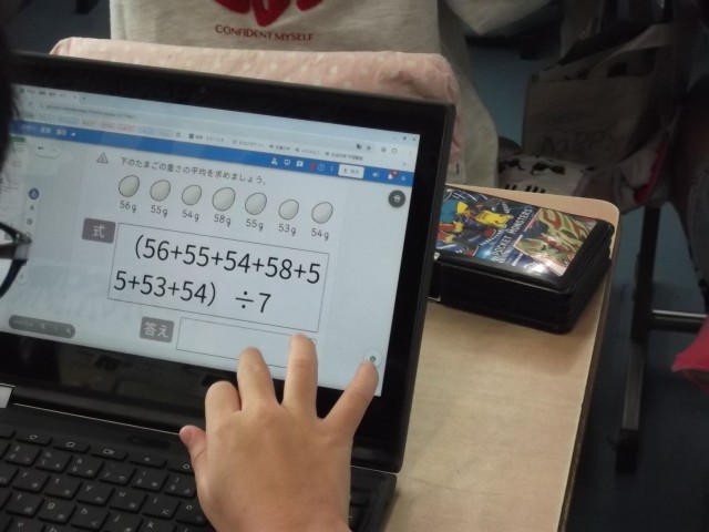 平均を求めています。たし算が大変と思った児童が工夫をし始めました。