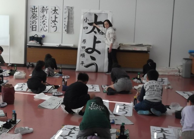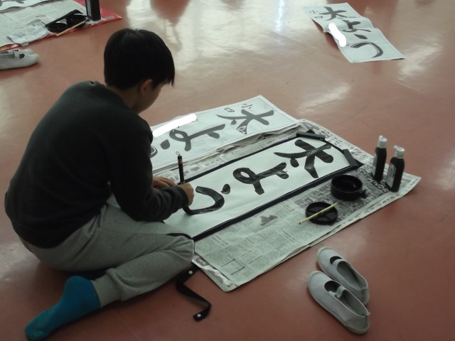 書き初めの練習が始まりました。堂々と力強く書いています。