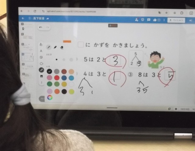 復習問題「前から3台」と「前から5台目」の違いや「5は2といくつ」になるのかを確認しています。