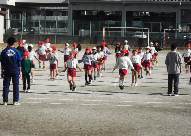 1月28日と29日に実施する「短縄記録会」に向けた練習が、本日から始まりました。学年目標として、1,2年生は前跳び1分間、3年生は1分30秒です。