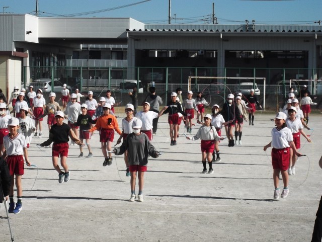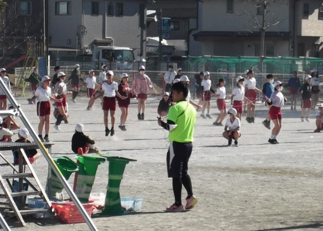 4年生は2分、5,6年生は3分前跳びを跳び続けることに挑戦しました。「がんばれ~」「あと少し」の声援を受けながら跳び続け、記録会終了時には自然と拍手がわ沸き起こっていました。