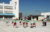 校庭の落ち葉に気がついた児童が、自主的に掃き掃除をしています。日に日に人数が増え...