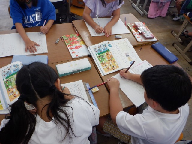 下の写真は、2年生の国語の様子です。グループの友達と協力して、教科書の絵にあるカタカナの言葉を探していました。「これもだね。」「ここにもあるよ。」と、仲良く協力している姿が印象的でした。