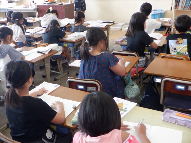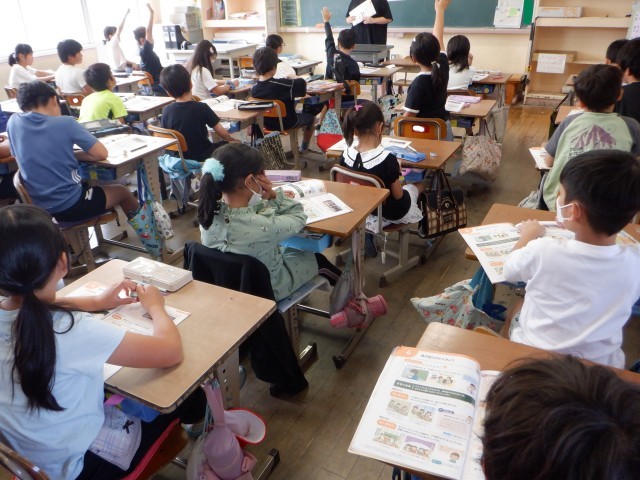 上の写真は、1年生の様子です。授業開始のあいさつをしているところです。休み時間から気持ちを切り替え、学習スイッチを入れていました。