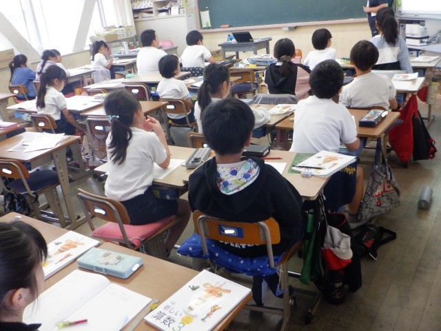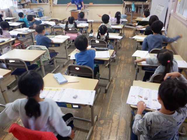 上の写真は、1年生の国語の様子です。漢字の『火』の書き順を確認し、一生懸命に漢字練習を行っていました。