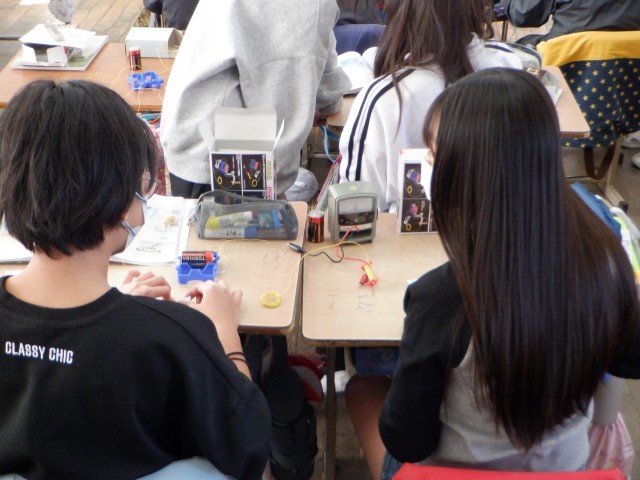 真ん中の写真は、5年生の理科の様子です。コイルのまき数を変えると電磁石の強さはどうなるのか、実験を通して調べていました。