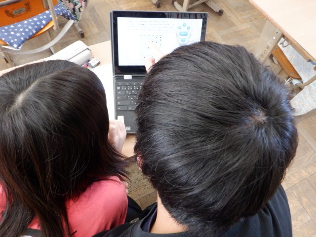 下の写真は、6年生の算数の様子です。並べ方と組み合わせ方について、真剣に考えていました。タブレットを使ったり、ノートに書き出したり、意欲的に学習に励んでいました。