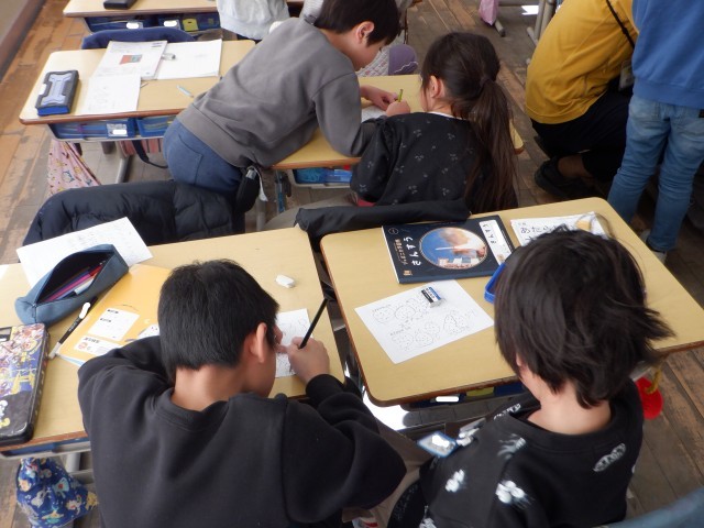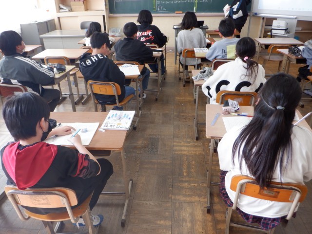 真ん中の写真は、3年生の国語の様子です。冬休みの思い出を作文にし、発表していました。友達の発表を一生懸命に聞く姿勢が印象的でした。