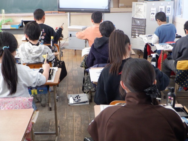 真ん中の写真は、5年生の書写の様子です。今日のポイントである中心線を意識しながら、『希望』の二文字を真剣に練習していました。