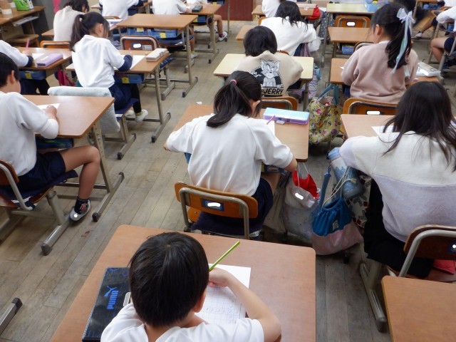 今朝のくり返しタイムの様子です。全学年、8時20分から30分までの10分間、復習問題に取り組んでいました。どの学年もどの学級も、集中して学習していました。大変立派です!真剣に問題を解く姿に、意欲を感じ、感心しました。