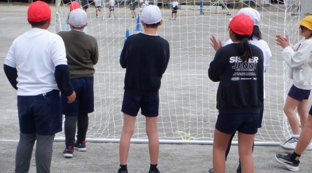上の写真は、4年生の体育の様子です。今日は、サッカーの練習をしていました。ドリブル練習では「ゆっくりでいいよ!」、ゴールを決めた友達には「ナイス!」と、温かい声かけがたくさん聞こえてきました。友達と協力して練習に励む子供たちの様子に感心しました。