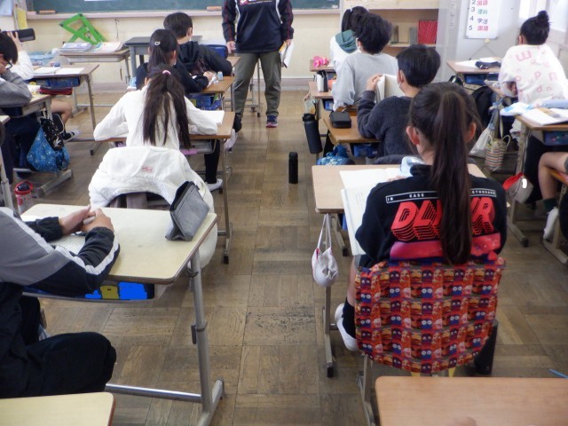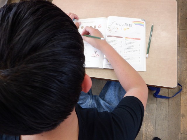 下の写真は、6年生の算数の様子です。学習のまとめとして、文章題を解いていました。