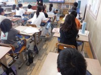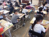 上の写真は、1年生の書写の様子です。今日は、水筆を使って書く練習をしていました...