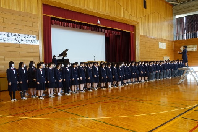 大原中学校では歓迎の歌を3年生全員で披露してくれました。