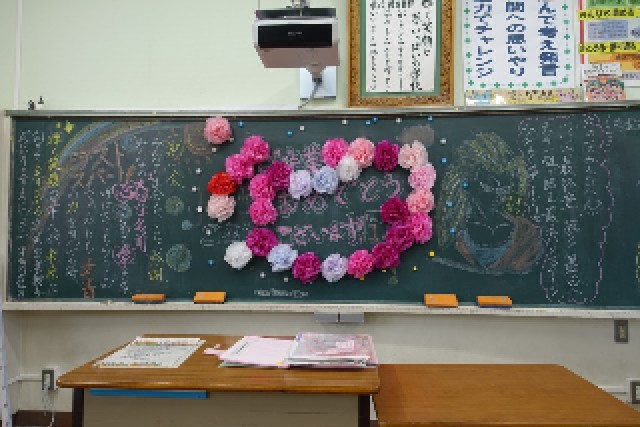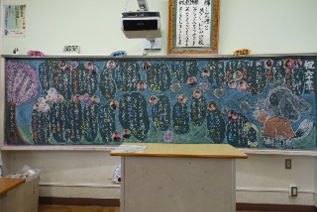 卒業生が去った後の黒板 楽しかった思い出を胸に…。