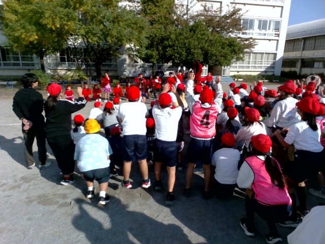 赤組では、応援コールでリズムよく腕を振りあげたりウエーブのタイミングを合わせたりして、応援の内容を確認することができました。