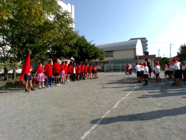 気持ちの良い青空が広がった今朝は、赤組と白組に別れて、応援練習を行いました。