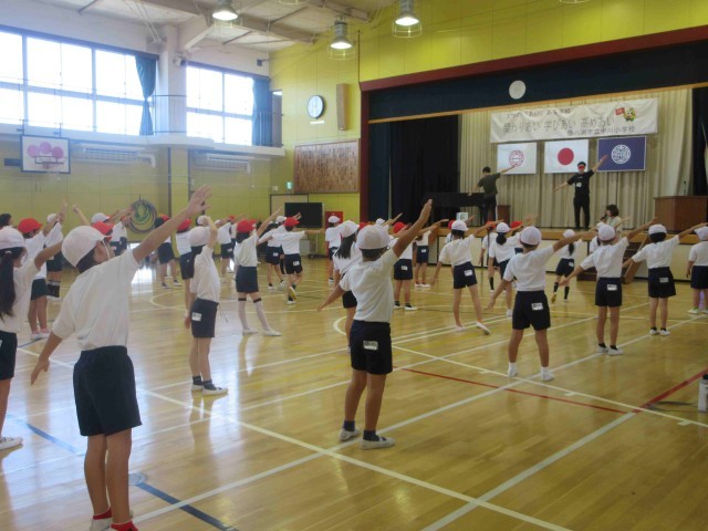 今日の学習 公開日 2025/10/08 更新日 2025/10/08 学校生活のようす 10月8日。3年生と4年生が、体育で表現運動に取り組んでいます。運動会に向けて、3・4年生が合同で発表する「よっちょれソーラン」の練習に取り組んでいました。