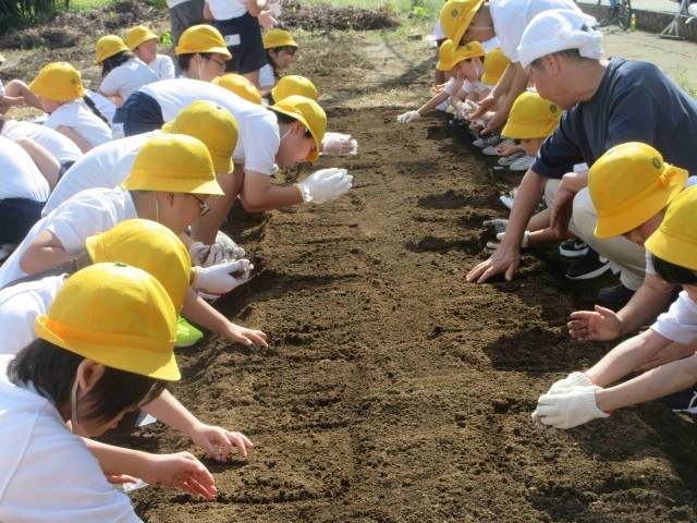 10月17日。2年生は「町たんけんに行こう」、3年生は「名人から教えてもらおう」を学習しています。近くのお店や施設に出向いてインタビュー、私たちが住む八潮市の特産である小松菜の種まきに取り組んでいました。
