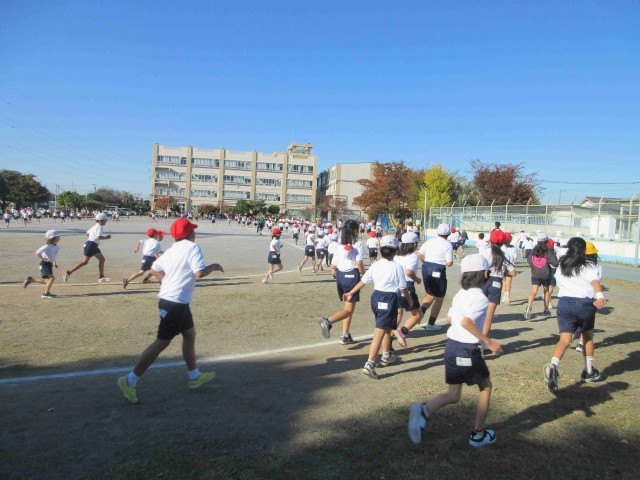 持久走大会に向けて 公開日 2025/11/17 更新日 2025/11/17 学校生活のようす 11月17日。今日の中小タイムは、全校児童で校庭を走りました。各学年で時間を決めて、前回の記録よりも距離を伸ばそうと頑張りました。