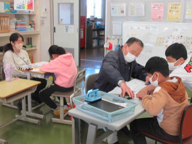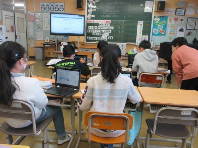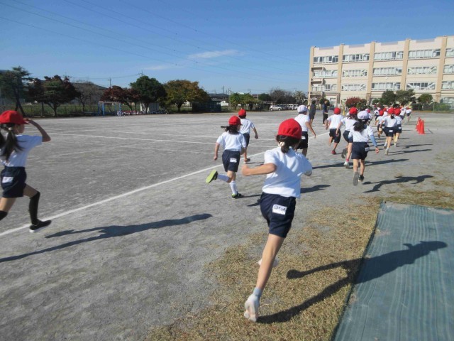 11月26日。1年生国語では「すきなところを見つけよう」、1・2年生の体育は「持久走」、5年生音楽では「音楽の詩と音楽との関わりを味わおう、特別支援学級の国語では「おはなしをよもう」、英語では「SAVE the animals」に取り組んでいました。たぬきの糸車の音読、持久走大会に向けた試走、待ちぼうけの作詞者や作曲者について文字の練習や動物が直面する問題の学習をしていました。