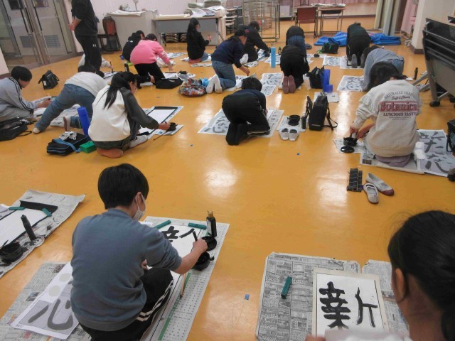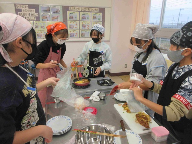 今日の学習 公開日 2025/12/03 更新日 2025/12/03 学校生活のようす 12月3日。5年生は「書き初め」、6年生の家庭科では「一食分のおかずをおいしくつくろう」に取り組んでいました。校内書き初め会に向けた画仙紙での練習、自分たちで考えたメニューの料理づくりに臨んでいました。