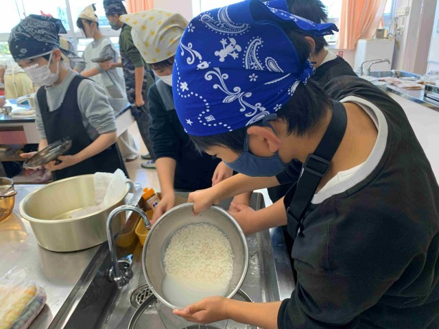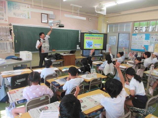 12月5日。3年生は「新聞にまとめよう」、4年生の体育では「縄跳び」、5年生の家庭科では「ご飯とみそしるを作って食べよう」を学習しています。ゲストティーチャーによる「書くための3つのヒミツ」、持久力を高める連続前跳び、調理実習に取り組んでいました。