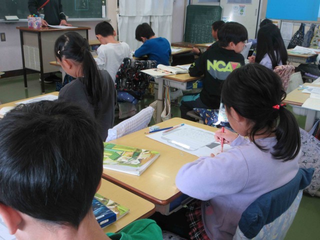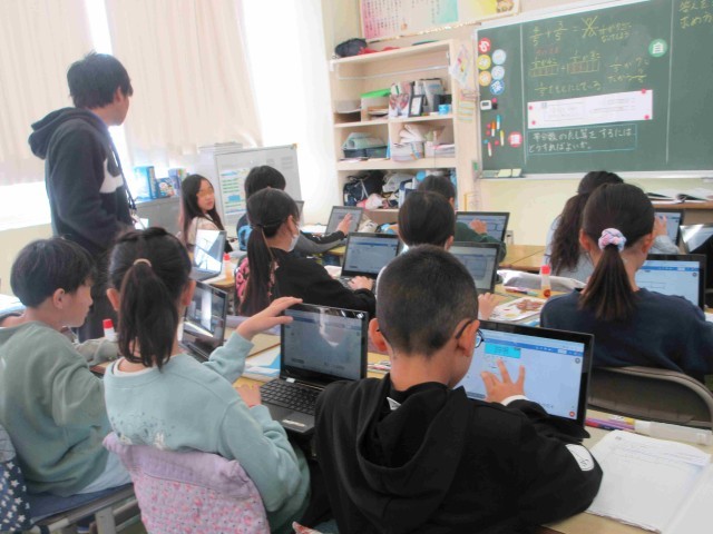 今日の学習 公開日 2025/12/10 更新日 2025/12/10 学校生活のようす 12月10日。1年生の国語では「本はともだち」、2年生の図工では「まどのある たてもの」、4年生の算数では「分数をくわしく調べよう」を学習しています。お話カードの書き方を覚えよう、工夫しながらの作品づくり、帯分数の足し算に取り組んでいました。