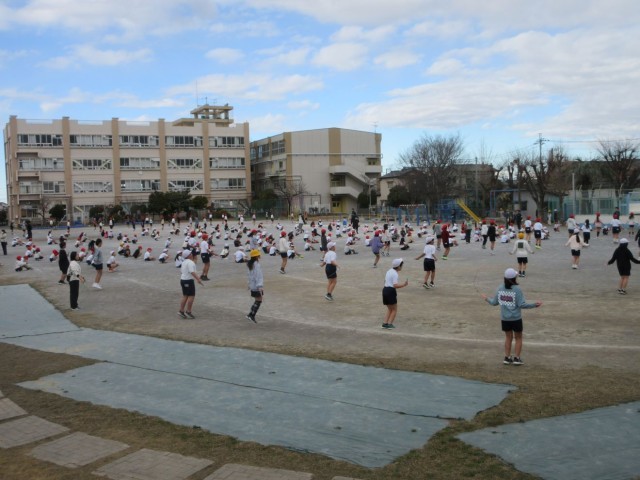 1月21日。今日の中小タイムは、来週行う「縄跳び大会(短縄)」に向けた全校練習を行いました。定められた時間を跳べるように頑張る児童を応援する声が響き渡る時間になりました。