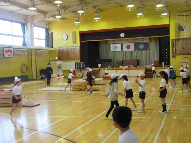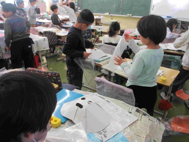 今日の学習 公開日 2026/01/23 更新日 2026/01/23 学校生活のようす 1月23日。1年生は体育「ゲーム(鬼遊び)」、2年生は図工「かぶって へんしん」、3年生は体育「器械運動(跳び箱運動)」を学習しています。いろいろな鬼遊び、作品づくり、踏切りを意識した練習に取り組んでいました。