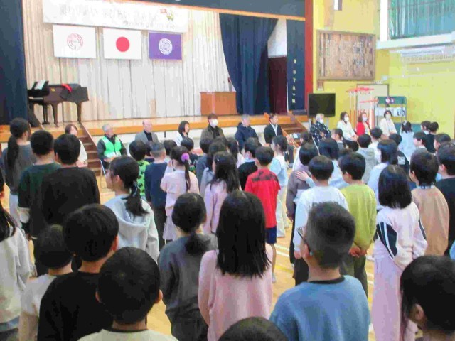 ありがとう集会 公開日 2026/02/13 更新日 2026/02/13 学校生活のようす 2月13日。私たちの学習や学校生活を支えてくださっている方々をお招きして、「ありがとう集会」を行いました。児童たちからのお礼の言葉やお手紙、花束と共に、心を込めた歌声で、感謝の気持ちを伝えました。これからもよろしくお願いします。