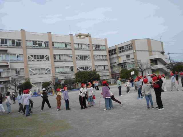 今日の昼休み 公開日 2026/02/16 更新日 2026/02/16 学校生活のようす 2月16日。今日の昼休みには、通学班の新班長さんたちの集まりで意見交換する姿や校庭で長縄を練習する姿が見られました。