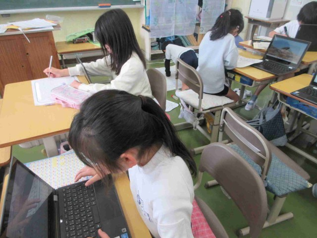 2月20日。特別支援学級は書写「こうひつ」、3年生は総合的な学習の時間「八潮市の産業」、6年生は国語「書き表し方を工夫して、経験と考えを伝えようを学習しています。ゆっくりよく見て書く、校外学習で見聞したことを新聞にまとめる、大切にしたい言葉を選んで関連する経験を書学習に取り組んでいました。