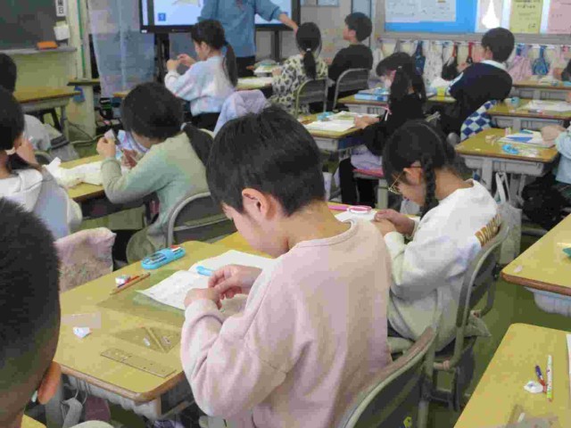 今日の学習 公開日 2026/03/12 更新日 2026/03/12 学校生活のようす 3月12日。3年生は算数「三角形を調べよう [三角形と角]」、音楽「思いを音楽で表そう」、5年生は算数「立体をくわしく調べよう [角柱と円柱]」を学習しています。角の大きさが大きい順にならべよう、歌詞が表す様子を感じ取ろう、角柱・円柱マスターになろうに取り組んでいました。