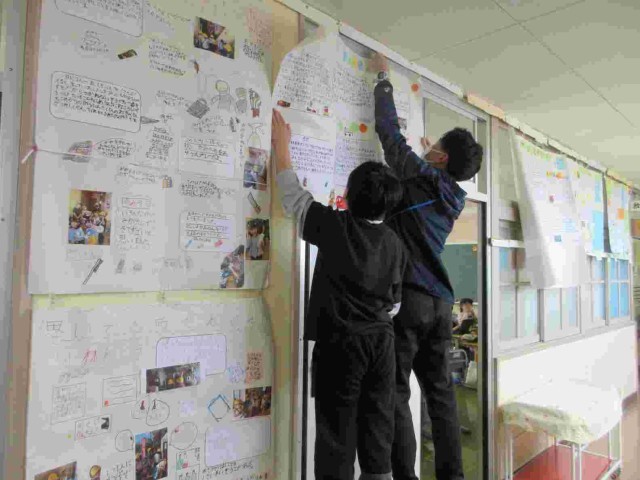 今日の学習 公開日 2026/03/16 更新日 2026/03/16 学校生活のようす 3月16日。1年生は体育「ボールけりゲーム」、3年生は総合「地域の魅力見つけた」、5年生は体育「ゴール型[ボール運動]」に取り組んでいました。ねらったところに蹴る学習、きらり八潮PR作戦の成果物完成と掲示、サッカーのミニ試合に取り組んでいました。