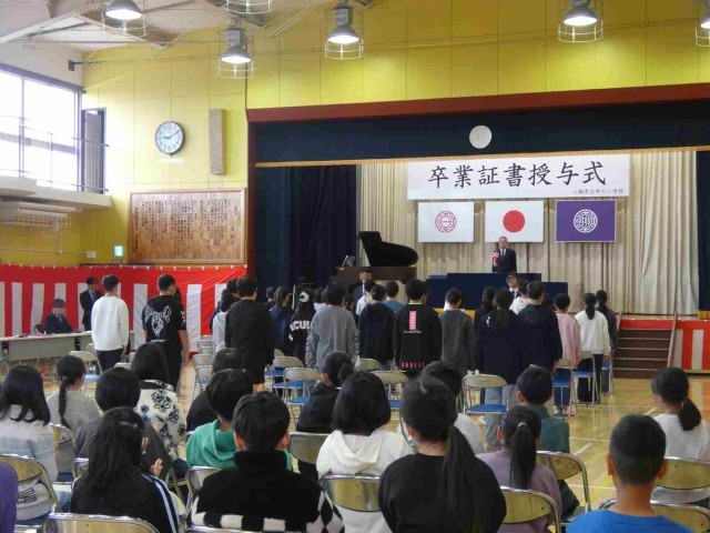 卒業式予行 公開日 2026/03/17 更新日 2026/03/17 学校生活のようす 3月17日。来週行う卒業式の予行を行いました。この予行には5年生も参列し、来年度の自分の姿を重ねて臨みました。六年間の最後の授業に臨む予行の姿勢は、とても立派でした。